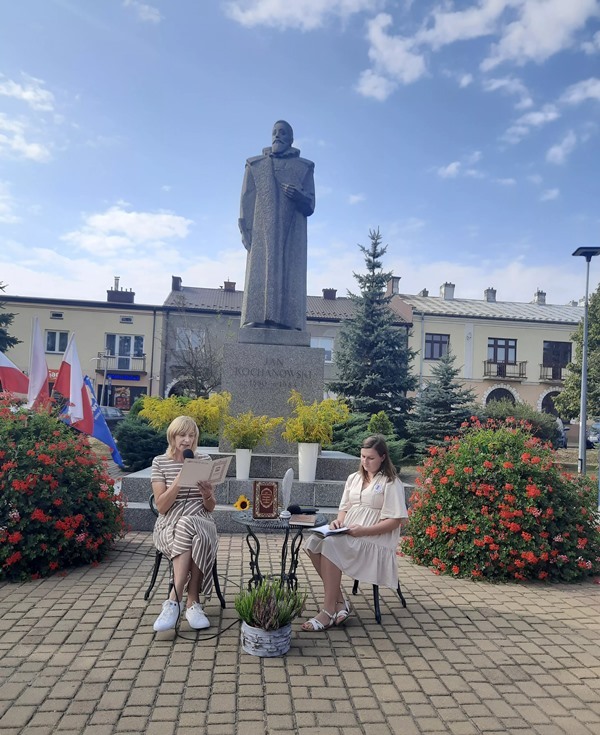 We wtorek 9 września 2025 roku w parku miejskim w Zwoleniu przy pomniku Jana Kochanowskiego odbyła się XIV edycja Narodowego Czytania. Tegoroczną lekturą była poezja Jana Kochanowskiego – pieśni, treny i fraszki. W rolę lektorów wcielili się przedstawiciele władz Urzędu Miasta i Gminy Zwoleń, Starostwa Powiatowego, instytucji kultury, dyrektorzy, nauczyciele lokalnych szkół, bibliotekarze, czytelnicy, słuchaczki Dziennego Domu Senior+ oraz panie z Grupy Artystycznej Zwoleniaki, które uświetniły swój występ renesansowym strojem. Naszą szkołę reprezentowali bibliotekarze: Justyna Kaczmarczyk, Wioleta Zawodnik, Renata Kramarczyk, Katarzyna Stawarz.
