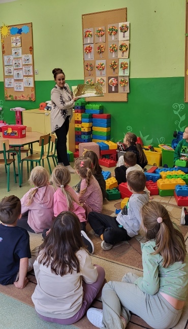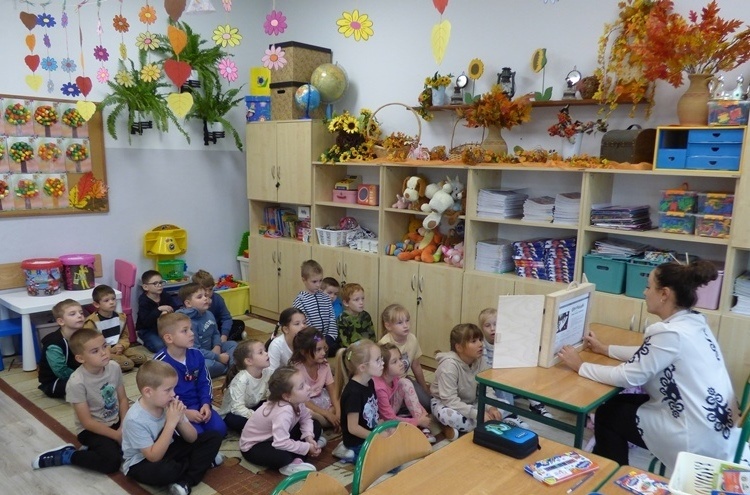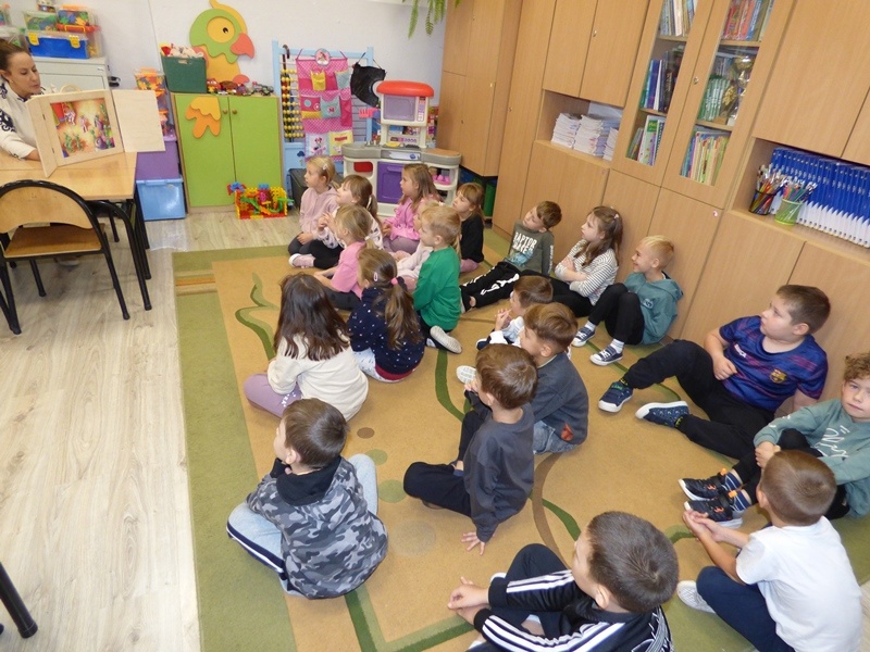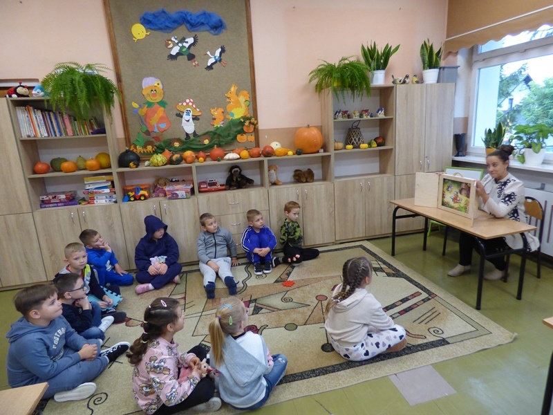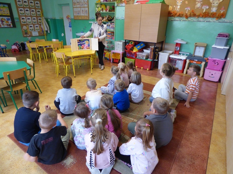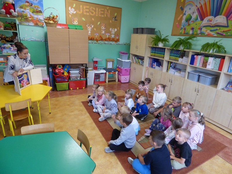 29 września obchodziliśmy Ogólnopolski Dzień Głośnego Czytania. W tym dniu nauczyciel biblioteki, Wioleta Zawodnik wybrała się do oddziałów przedszkolnych, aby przedstawić dzieciom Teatrzyk Kamishibai. We wszystkich oddziałach przedszkolnych zaprezentowała opowiadanie pt.: „Gburkoludki już znają: proszę, dziękuję, przepraszam”, który mówi o budowaniu relacji. Podczas zajęć świetlicowych z oddziałami przedszkolnymi zaprezentowała opowiadanie pt.: „Jesienny bal w lesie”, przeprowadzając pogawędkę o oznakach nadchodzącej jesieni. Przeczytała również książkę pt.: „Nawet nie wiesz jak bardzo cię kocham”, kończąc rozmową z dziećmi o wspólnych relacjach.