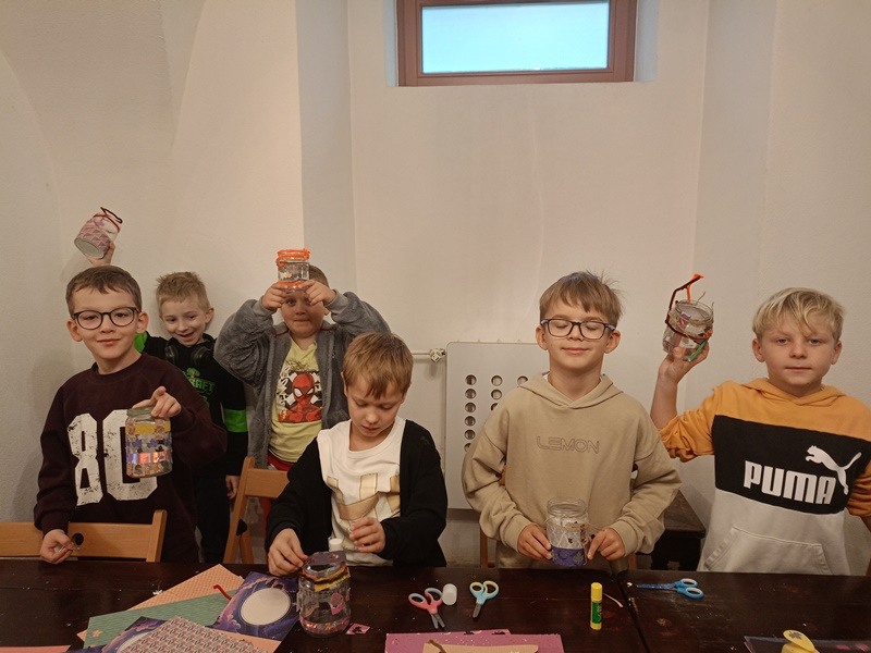 Wykorzystując ofertę Muzeum Jana Kochanowskiego w Czarnolesie, uczniowie klas 1c i 1e naszej szkoły wybrali się tam na warsztaty plastyczne. Dzieci oklejały słoiki papierowymi elementami i obwiązywały sznurkiem. W wyniku ich pracy powstały piękne jesienne lampiony. Spacer alejkami czarnoleskiego parku oraz jesienna aura nastroiły nas melancholijnie. Ostatnim punktem wyjazdu było zakupienie pamiątek.