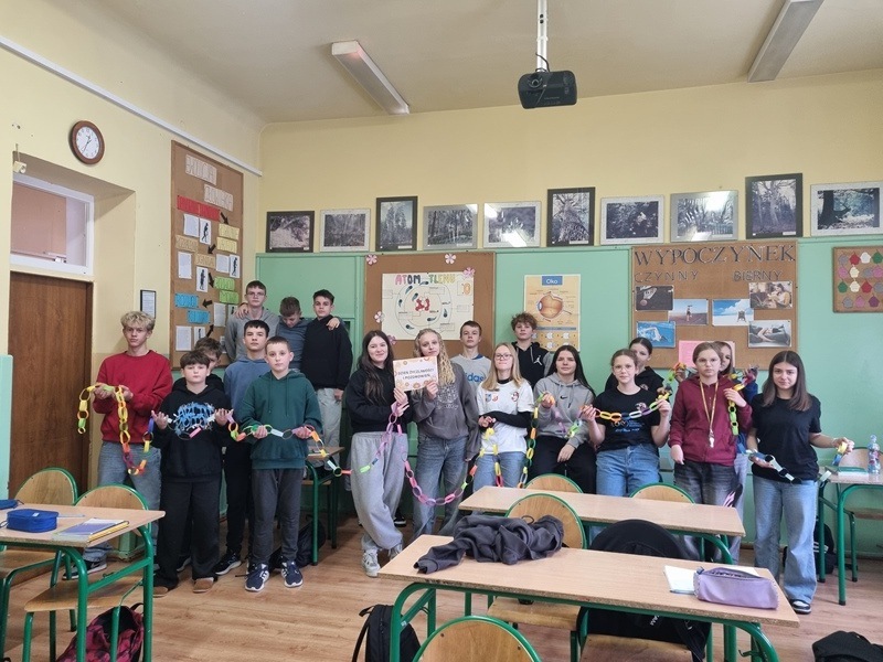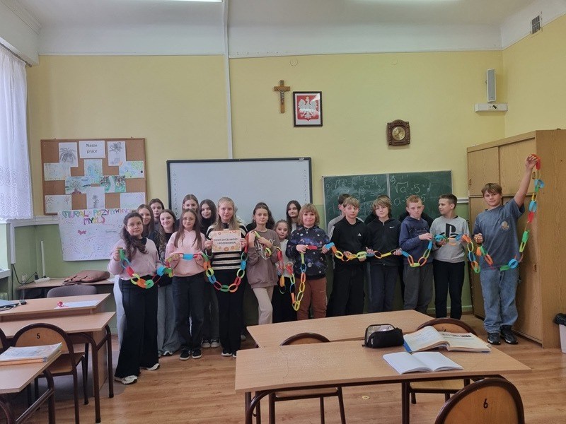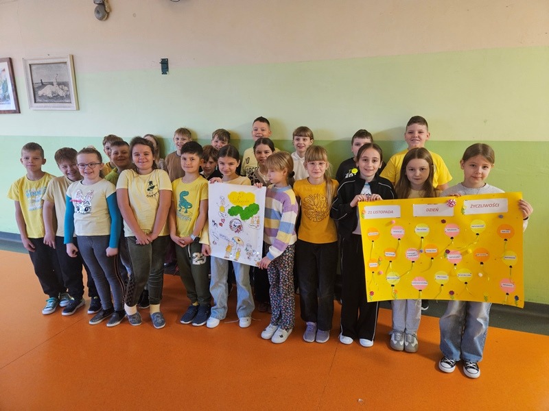 21 listopada odbył się w naszej szkole Dzień Życzliwości i Pozdrowień. To miłe święto służy propagowaniu idei pokoju na całym świecie poprzez okazywanie przyjaznych emocji. Mimo, że na dworze panowała pochmurna aura, w szkolnych salach i na korytarzach dominował kolor żółty, czyli kolor słońca symbolizujący radość, ciepło i pozytywne nastawienie. Uczniowie przesyłali sobie nawzajem, jak również nauczycielom i pracownikom obsługi i administracji karteczki z pozdrowieniami, przygotowane w ,,Kąciku życzliwości”, a w salach lekcyjnych tworzyli łańcuchy życzliwości, składające się z kolorowych ogniw, symbolizujących dobre uczynki, miłe słowo okazane drugiej osobie.