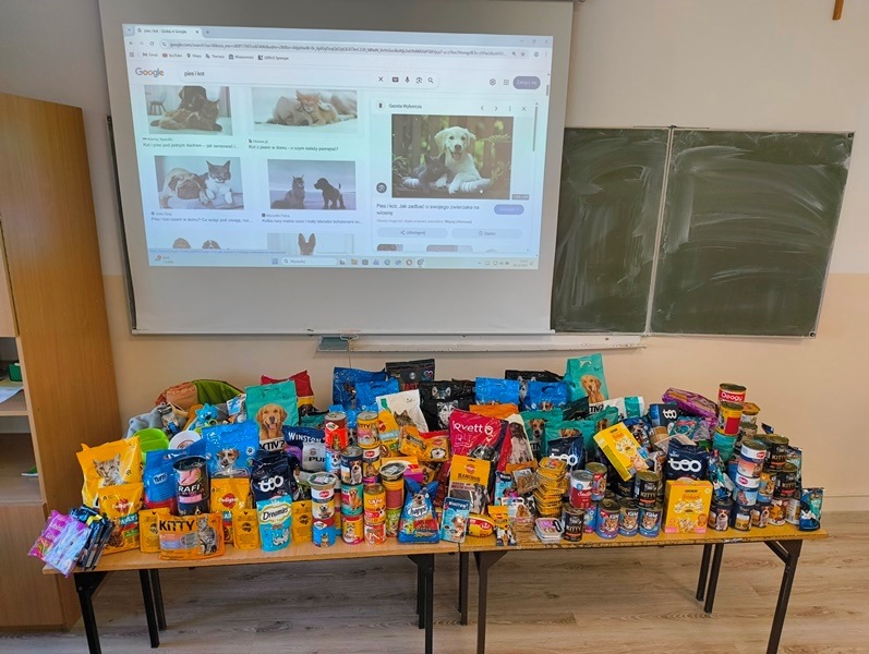 Uczniowie naszej szkoły bardzo chętnie zaangażowali się w to przedsięwzięcie. Zebrane dary zostały przekazane Stowarzyszeniu Pies i Kot w Zwoleniu dla potrzebujących czworonogów.