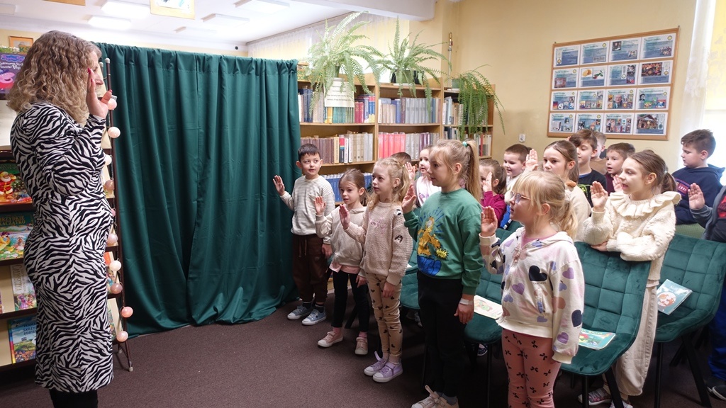 Podczas spotkania uczniowie zostali zapoznani z regulaminem biblioteki, dowiedzieli się, jak należy dbać o książki oraz w jaki sposób je wypożyczać.