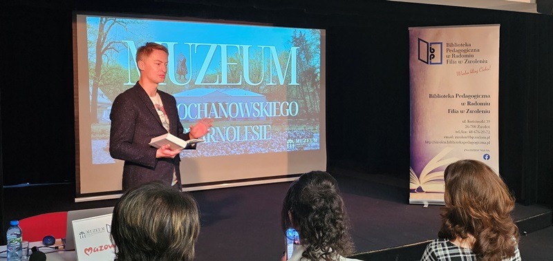Następnie uczestnicy wysłuchali niezwykle ciekawego wykładu pana Filipa Jaroszyńskiego, kustosza Muzeum Jana Kochanowskiego w Czarnolesie. Prelegent w barwny sposób opowiedział o życiu i twórczości Jana z Czarnolasu – jednego z najwybitniejszych poetów polskiego renesansu. Przybliżył młodzieży realia epoki, ciekawostki z życia poety oraz znaczenie jego twórczości dla rozwoju języka polskiego. Spotkanie było również okazją do zaproszenia uczniów do odwiedzania Muzeum w Czarnolesie i poznania bliżej miejsca związanego z poetą.