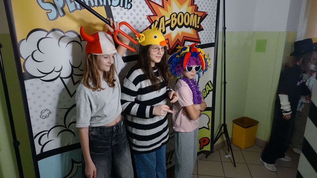 Dużym zainteresowaniem cieszyła się fotobudka, gdzie uczniowie mogli zrobić sobie pamiątkowe zdjęcia z przyjaciółmi. Śmiechu i pozytywnych emocji było co niemiara!