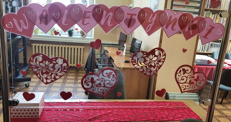 O święcie zakochanych pamiętali także nasi uczniowie. Jak co roku Samorząd Uczniowski ze współpracy z biblioteką zorganizował szkolną pocztę walentynkową. 9 lutego w szkole pojawiła się skrzynka, do której przez cały tydzień można było wrzucać kartki dla wybranych osób.