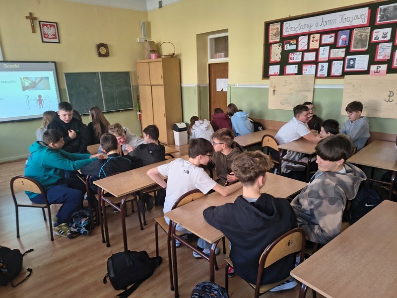 Dnia 16.03.2026r. uczniowie klas siódmych wzięli udział w zajęciach psychologicznych – ,,Istota szacunku w relacjach społecznych”. Na spotkaniu młodzież mogła zrozumieć znaczenie postawy pełnej empatii w kontekście dbania o swój kapitał społeczny oparty na prawidłowych relacjach. Nauczyli się również, czym jest autoszacunek i wrażliwość wobec samego siebie.