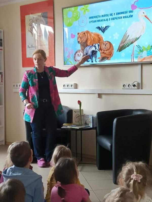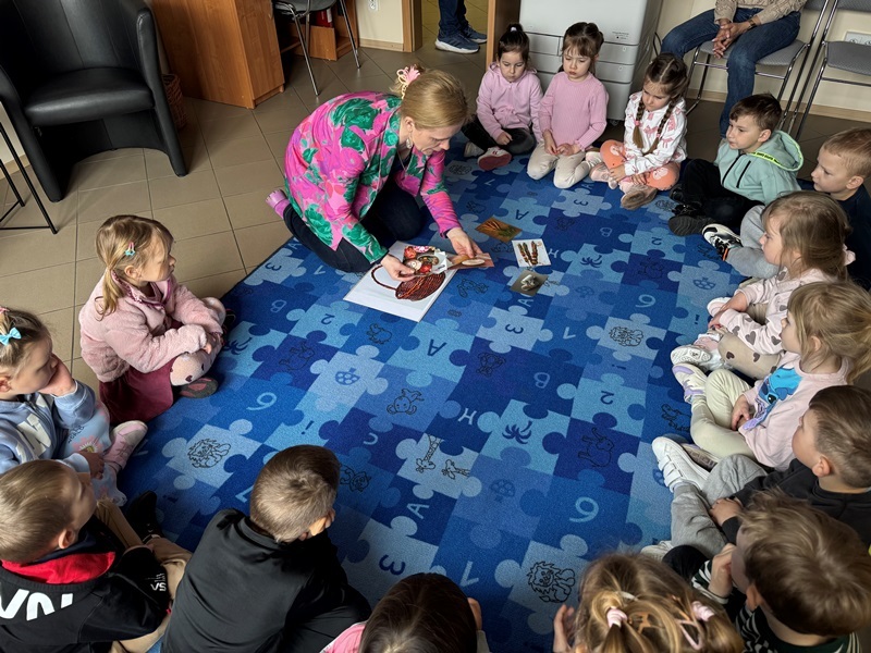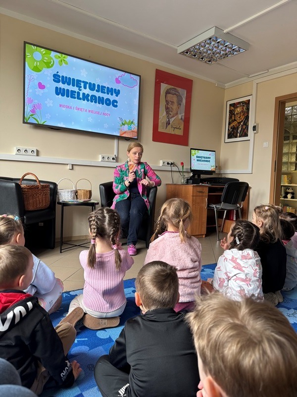 W piątkowe przedpołudnie, 27 marca, przedszkolaki z grup „Sówki” oraz „Jeżyki” wybrały się na wyjątkowe zajęcia do Biblioteki Pedagogicznej w Zwoleniu. Spotkanie odbyło się pod hasłem „Świętujemy Wielkanoc – Wiosna i Święta Wielkiej Nocy” i dostarczyło dzieciom wielu radosnych oraz pouczających chwil.
